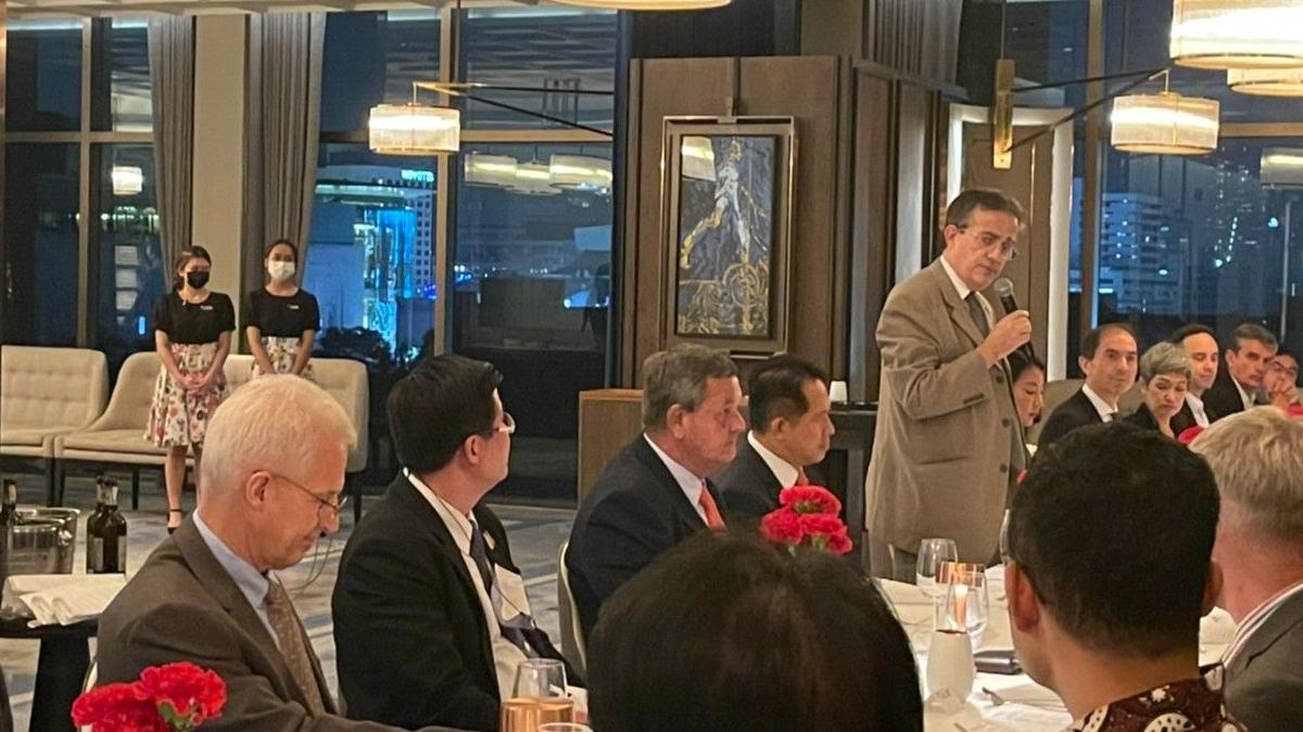 Sihasak Phuangketkeow, Special Advisor, Foreign Affairs of EEC, Mr. Songwut Apirakkhit, Director of Investment Managment of EEC, Petros Sourmelis, Head of Trade and Economic Section of EU Thailand, and Mr. Hubert Colaris, Economic Counsellor of French Embassy.