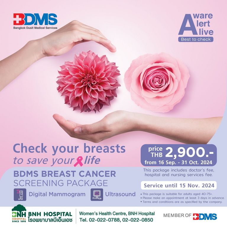 Offering all women the opportunity to undergo breast cancer screening (Digital Mammogram & Ultrasound) at a special price of 2,900 THB Special @BNH…