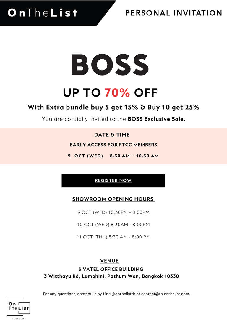 UP TO 70% OFF With Extra bundle buy 5 get 15% & Buy 10 get 25% You are cordially invited to the BOSS Exclusive Sale. DATE & TIME EARLY ACCESS FOR…