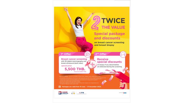 TWICE THE VALUE: Special package and discounts on breast cancer screening and breast biopsy 1st Offer: Breast cancer screening with 3D digital…