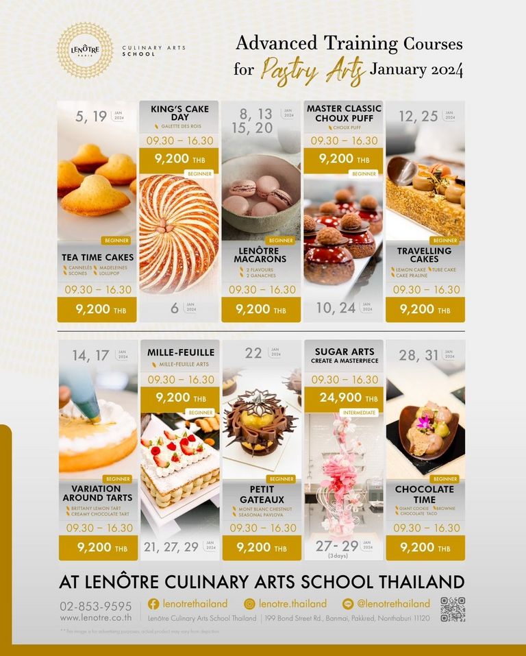 AT LENÔTRE CULINARY ARTS SCHOOL THAILAND TEA TIME CAKES : 5, 19 Jan. 2024 CANNELES, MADELEINES, SCONES, LOLLIPOP. 09.30 - 16.30 9,200 THB…