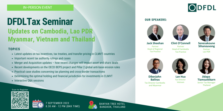 [Member News] DFDL Tax Seminar: Tax Updates on Cambodia, Lao PDR, Myanmar, Vietnam and Thailand (CLMVT)