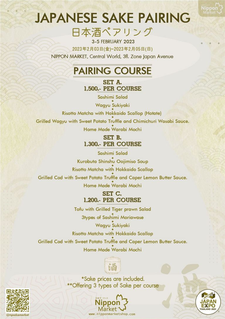 Union P. would like you to join SAKE Pairing on 3-4-5 FEB 2023 at Nippon market , Central world 3 floor Japan avenue zone.