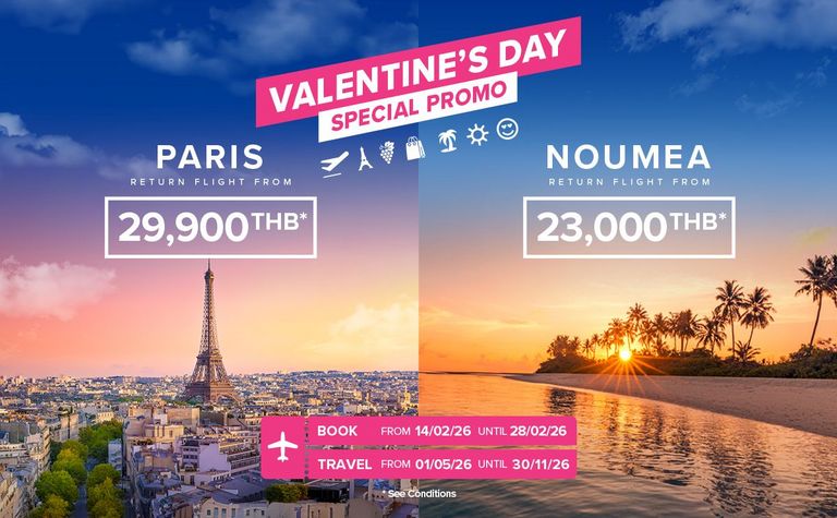 Celebrate the season of love with a special fare from Bangkok to Nouméa and Paris - Direct flight 💺 Special Valentin’s Fare to Paris starts…