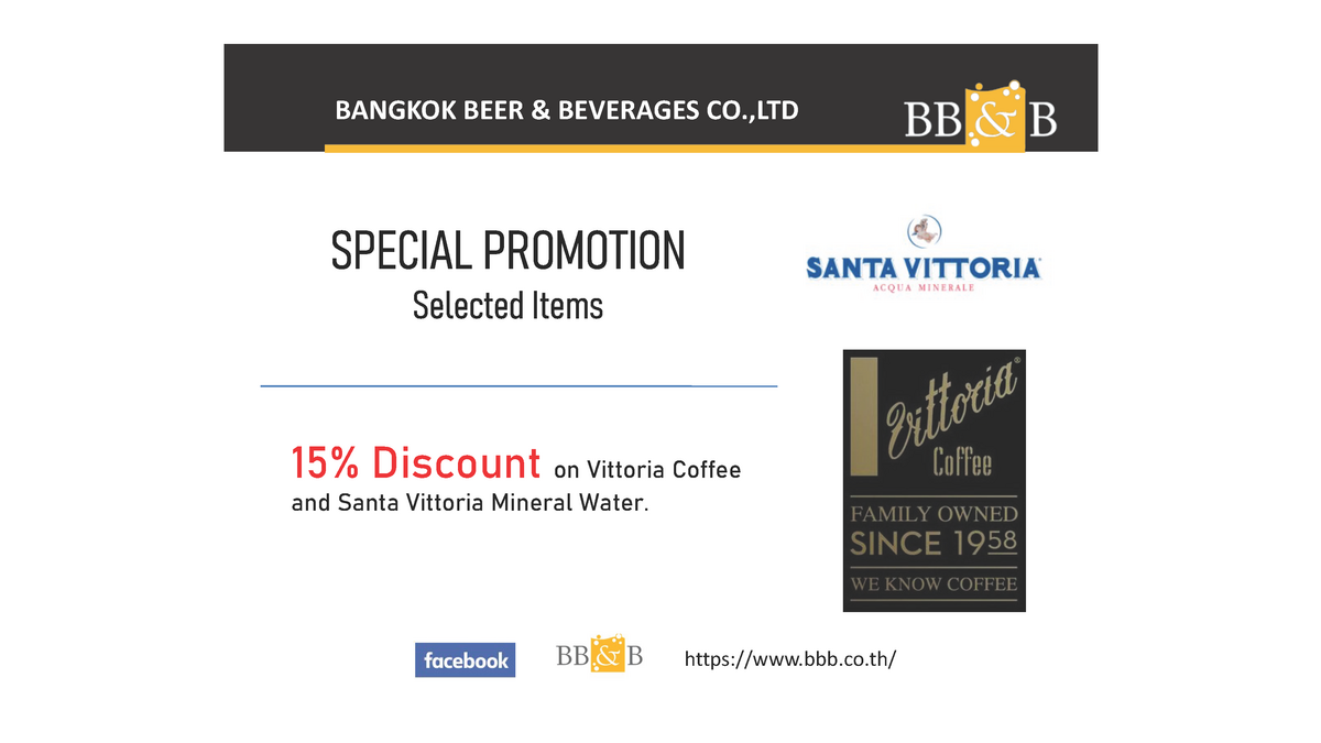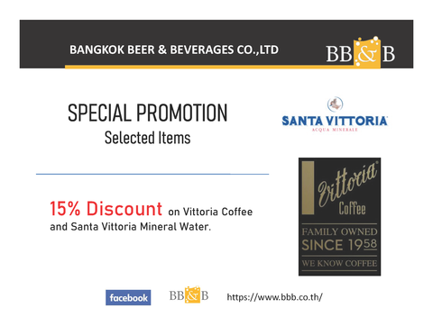 All members can receive 15% discount on selected items of Vittoria Coffee and Santa Vittoria Mineral Water, Until end of 15th November 2021.