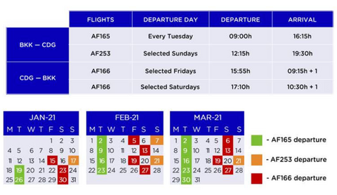 Starting 15th of January 2021, Air France will be operating Semi-Commercial Flights from Paris to Bangkok as following details: