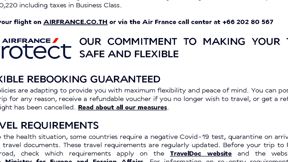 Book your flight on AIRFRANCE.CO.TH or via the Air France call center at +66 202 80 567