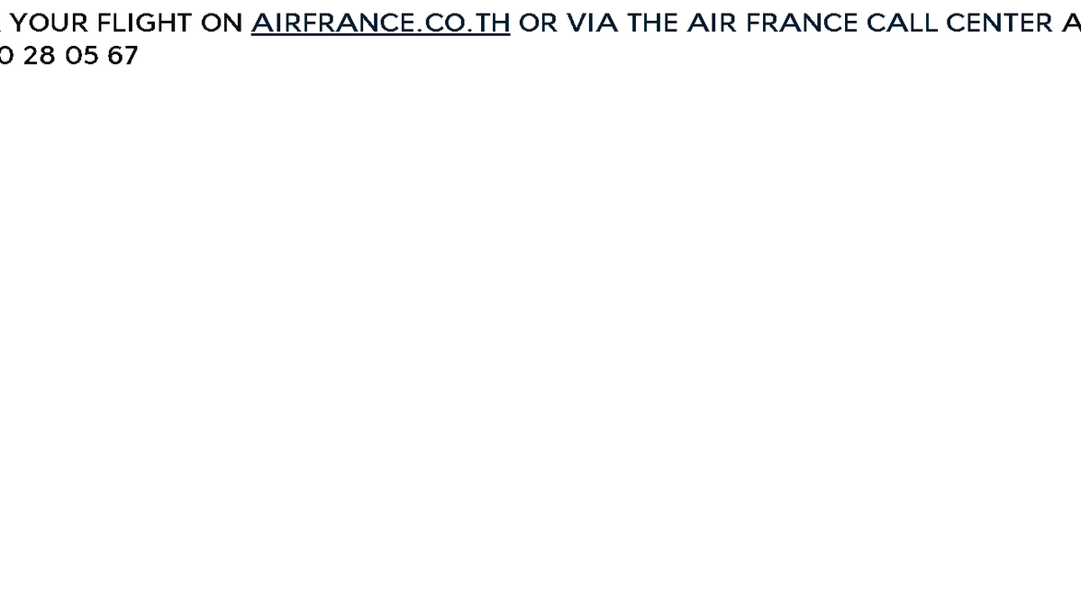 BOOK YOUR FLIGHT ON AIRFRANCE.CO.TH OR VIA THE AIR FRANCE CALL CENTER AT +66 20 28 05 67
