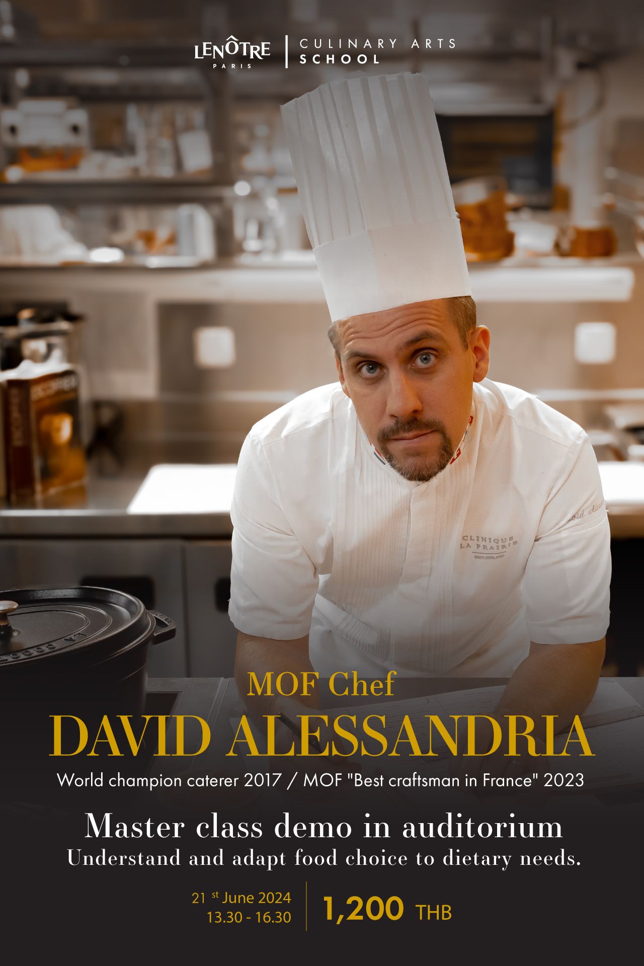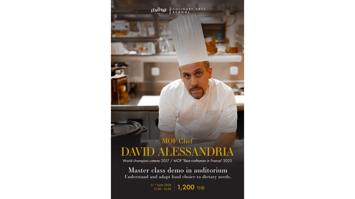 ไม่ใช่เพียงสถานที่สุดพิเศษ แต่นี่ยังเป็นโอกาสสุดพิเศษ ณ โรงเรียนสอนประกอบอาหาร เลอโนท ประเทศไทย เมื่อ "เดวิด อเล็กซานเดรีย" สุดยอดเชฟด้านอาหาร เจ้าของตำแหน่ง MOF 2565 และ world champion caterer 2560 จะเดินทางมาถ่ายทอดเทคนิคต่าง ๆ ให้ผู้สนใจอย่างใกล้ชิด บอกเลยว่า...คลาสนี้ห้ามพลาด !