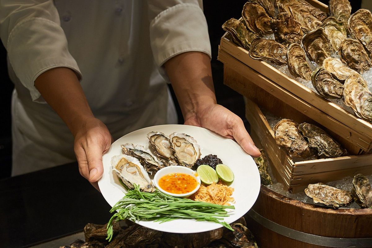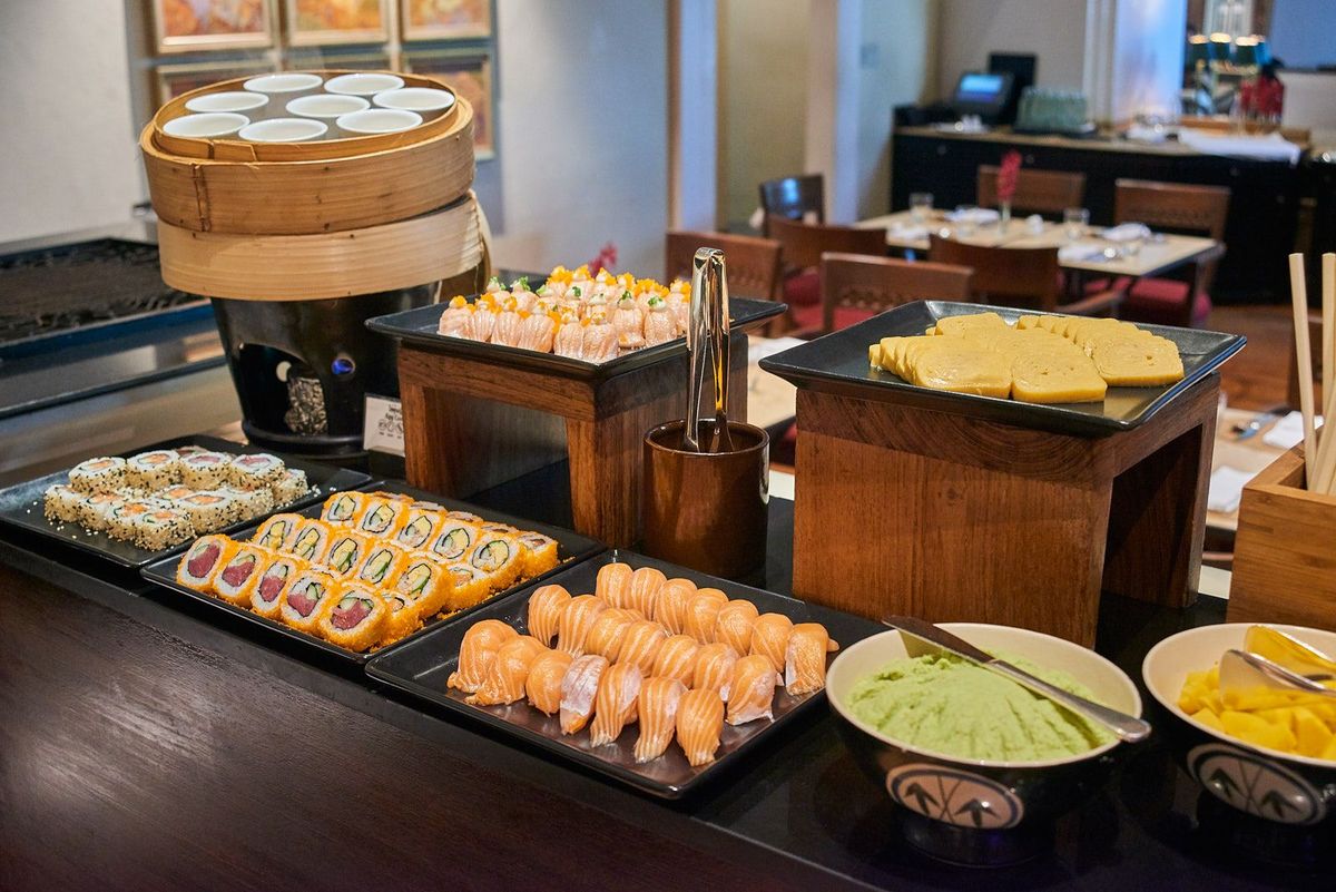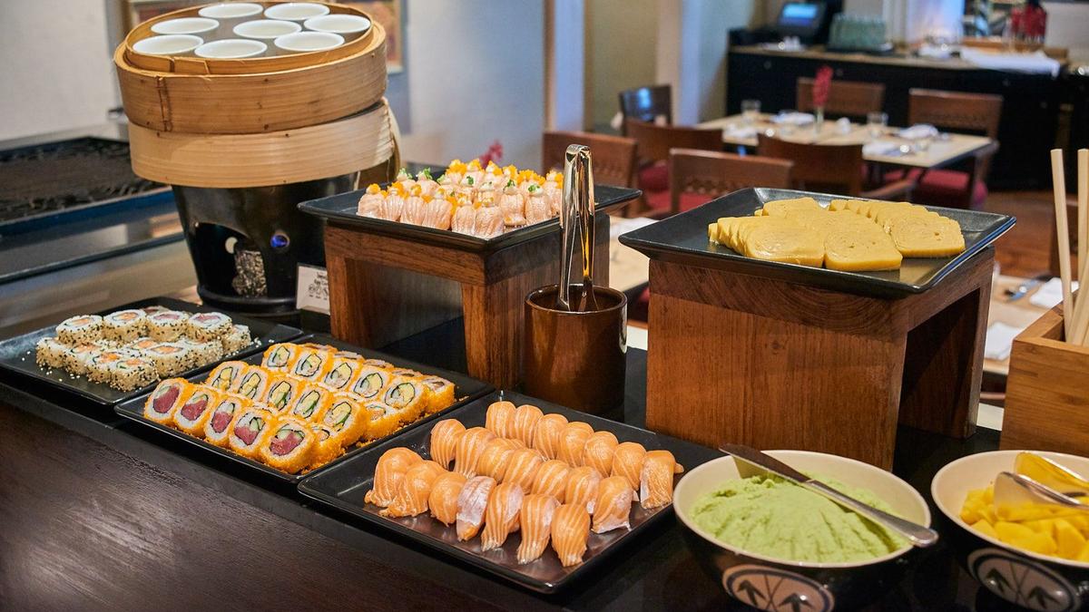 Indulge in an endless buffet line-up with premium Australian beef and lamb, fresh sustainable sourced seafood like Nordic salmon, variety of sushi and sashimi and a variety of desserts.