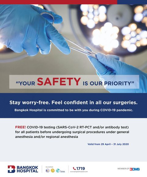 Bangkok Hospital: Free COVID-19 test ! the special offer for all patients undergoing the surgical procedure