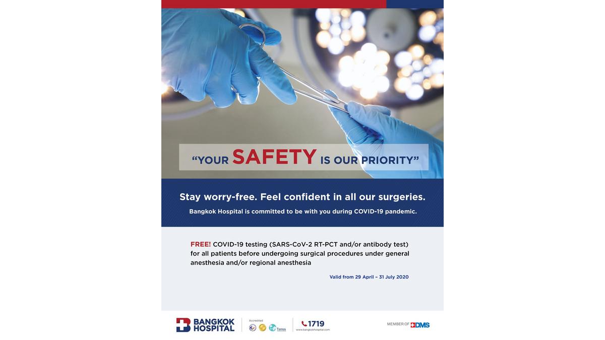 Bangkok Hospital: Free COVID-19 test ! the special offer for all patients undergoing the surgical procedure