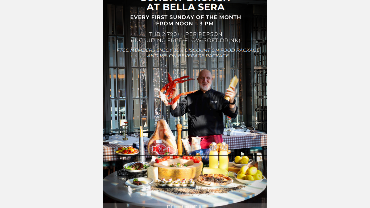 We are excited to offer an exclusive dining benefit to FTCC members for our Bella Sera Italian-style Sunday Brunch this coming Sunday (2nd of March). In keeping with our commitment to delivering exceptional dining experiences, we are pleased to extend the following offers to your members: