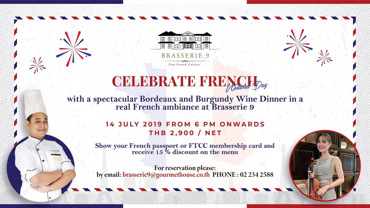 Brasserie 9: Special Dinner event for this year French National Day. Special discount for FTCC members!