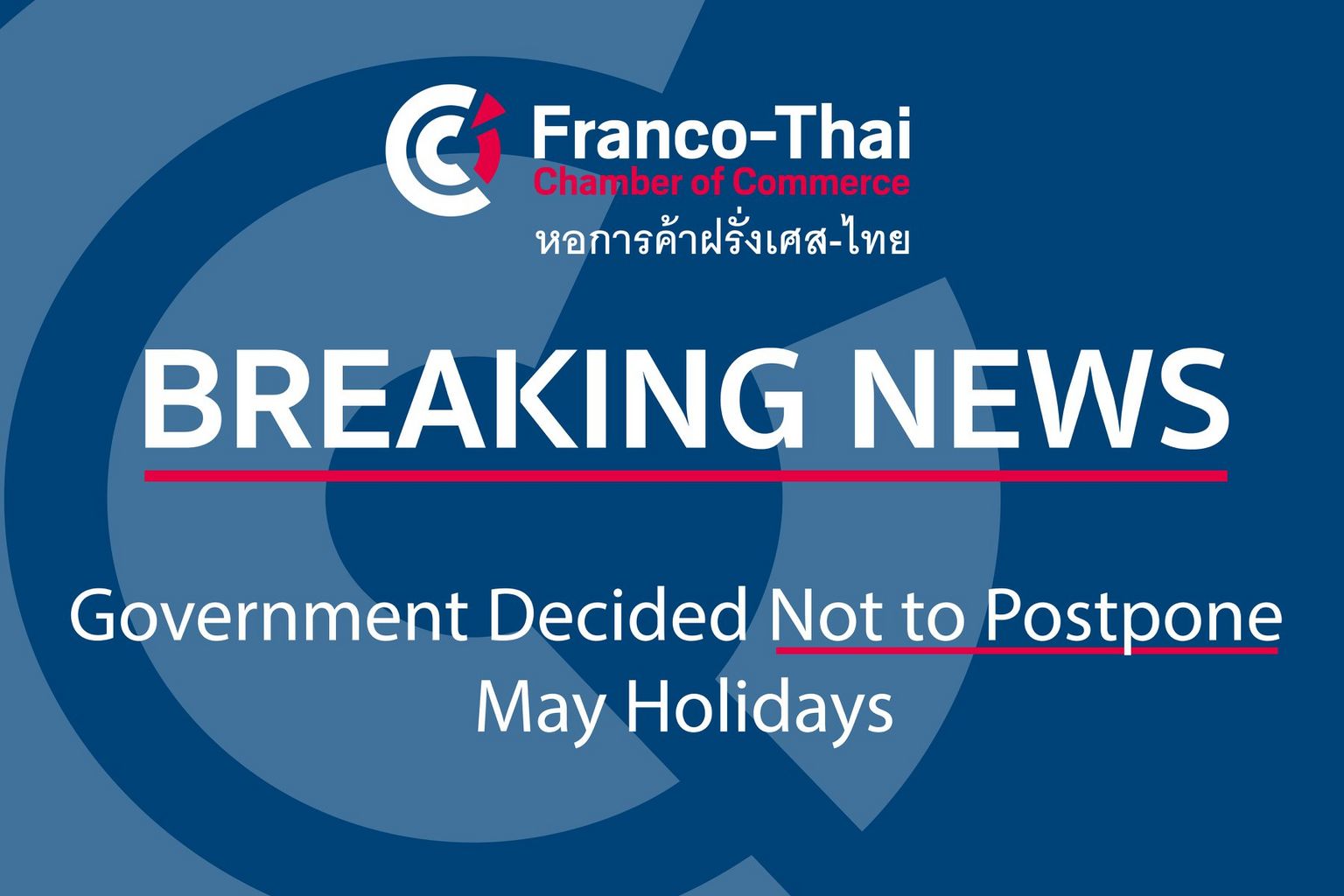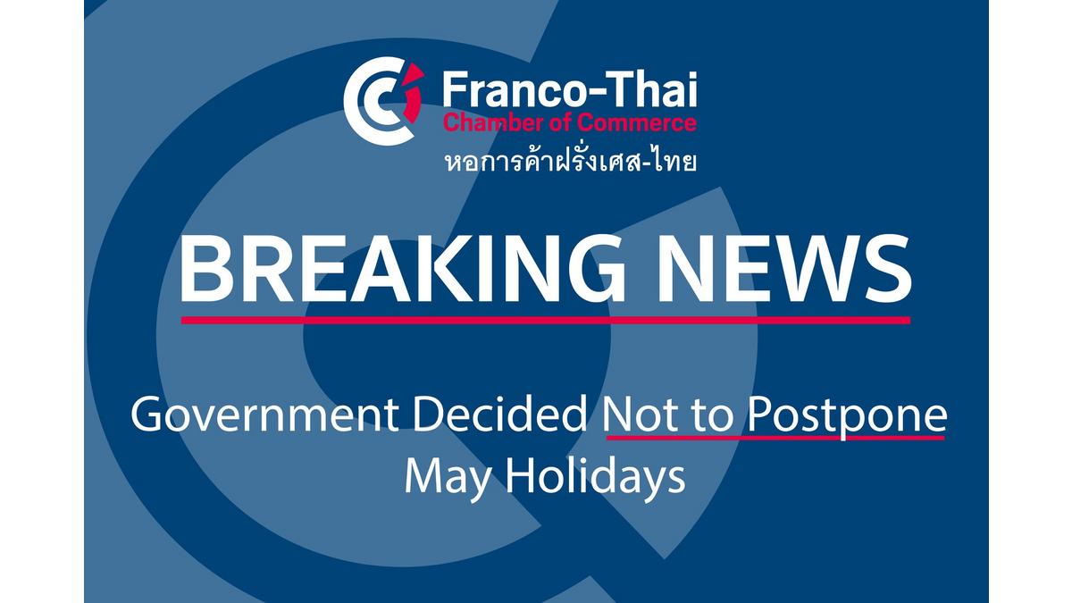 Following with the proposal from CCSA requested to postpone all holidays in May aiming to control the spreading of virus, the cabinet has recently voted to reject the proposal. Therefore, the holidays in May are remain unchanged.