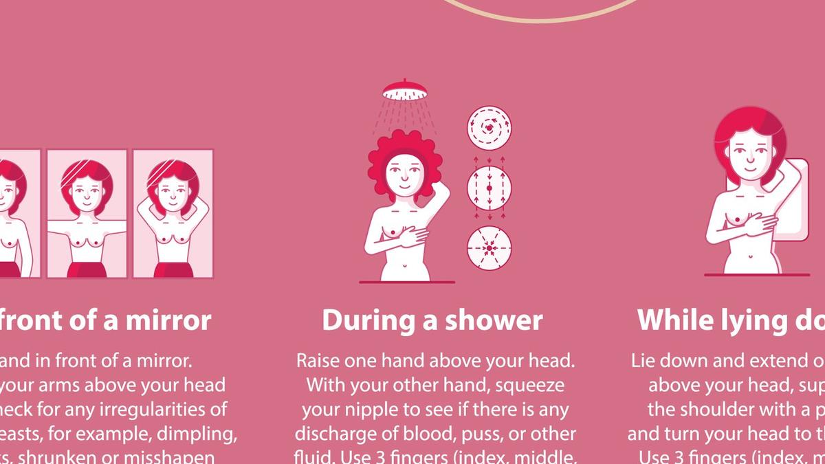 Breast self-examinations are a convenient way to check for lumps and other abnormalities. These infographics show you how to correctly perform breast self-exams and when best to consult a doctor.