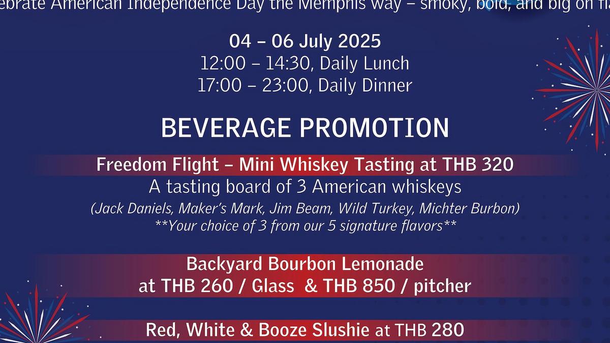 Rolling Ribs Brew Bar & BBQ at Le Méridien Bangkok invites guests to commemorate American Independence Day with a bold, smoky, and flavour-packed celebration from 4–6 July 2025. Inspired by Memphis-style barbecue traditions, the Backyard BBQ beverage promotion brings a spirited twist to classic Southern hospitality.