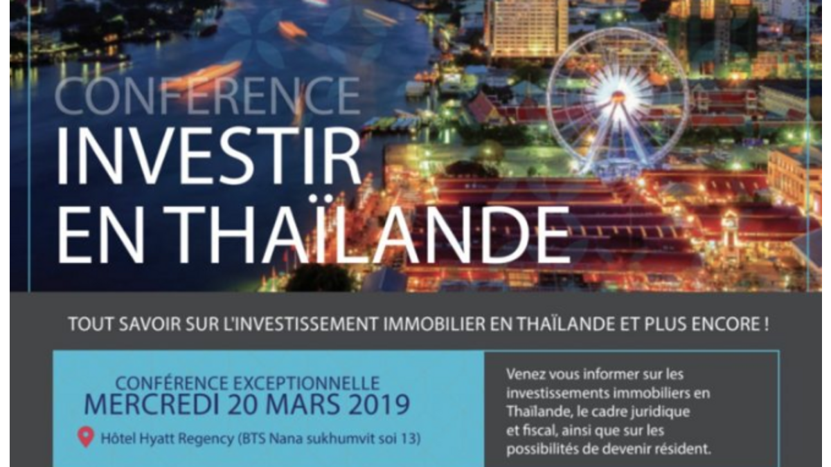 Pour plus d'infos: https://immobilier-en-thailande.com/investissement-immobilier-en-thailande-conference-bangkok/8573/