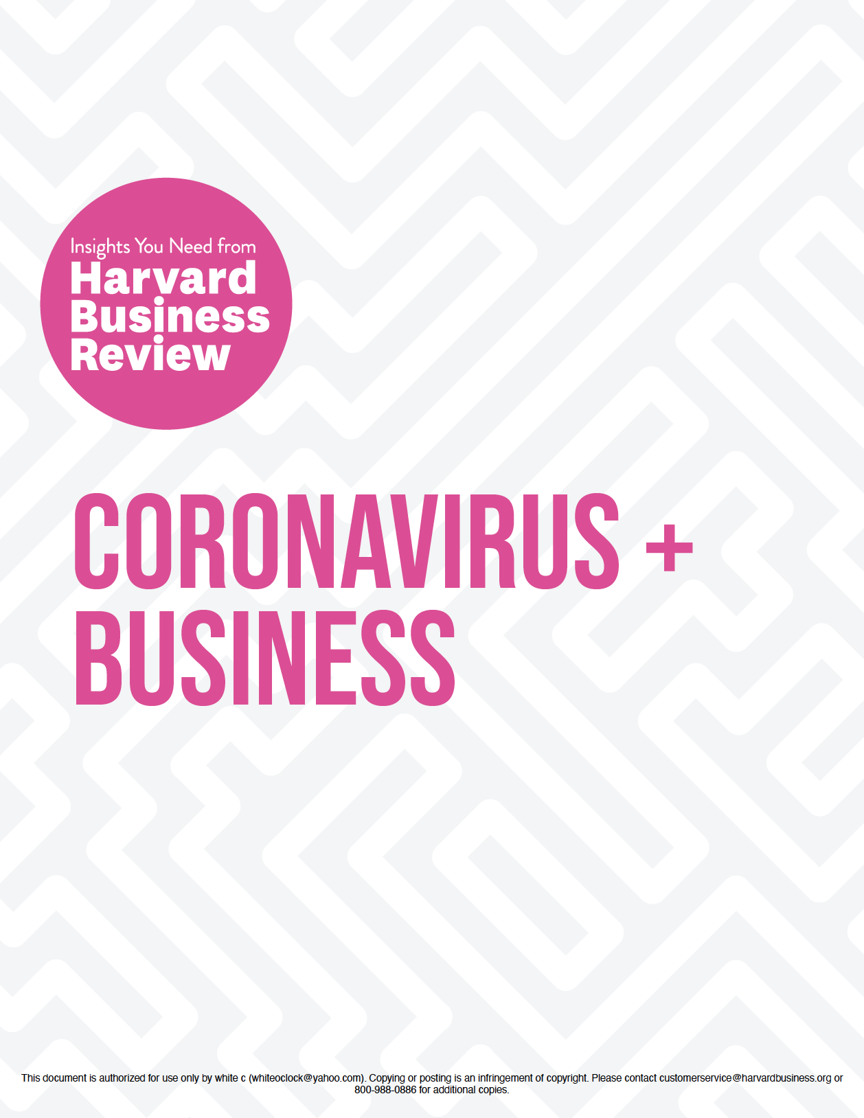 COVID-19 Coronavirus and Business: The Insights You Need from Harvard Business Review Le 02/04/2020 Click here to download the PDF File