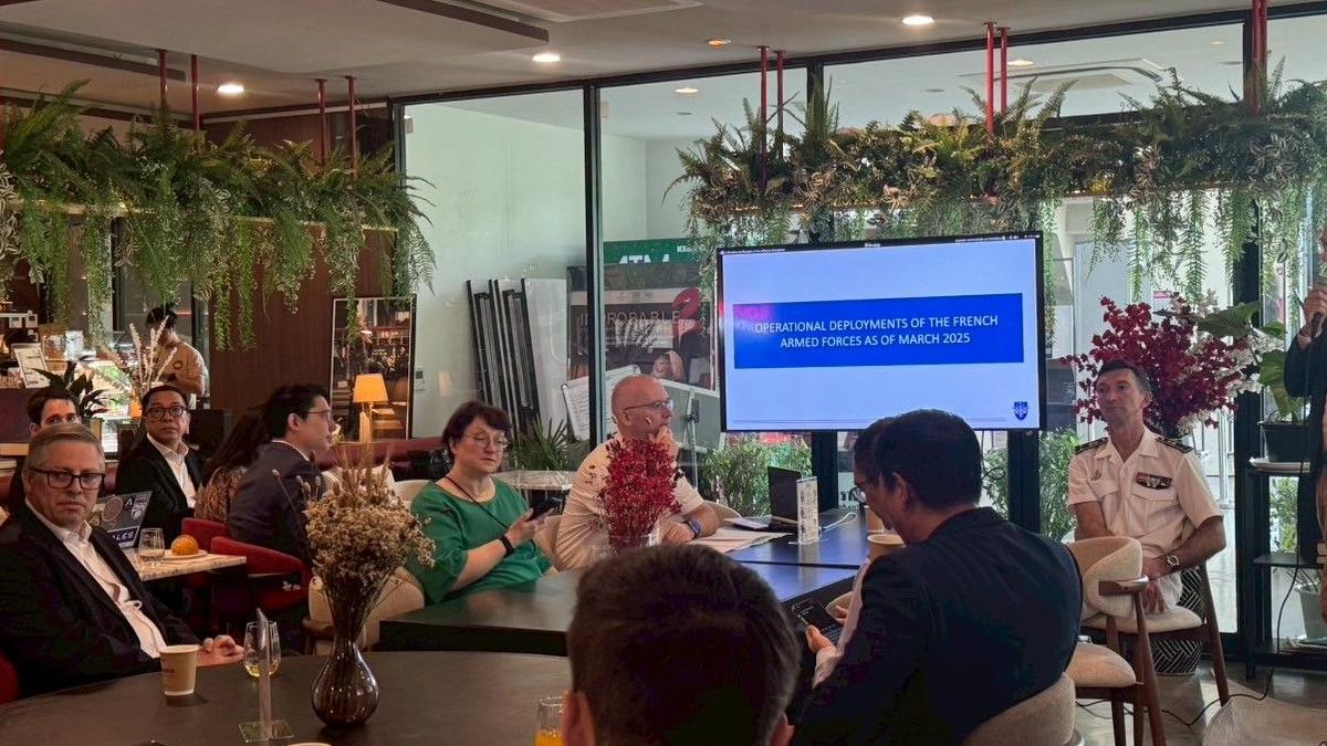 Their insightful presentation highlighted France’s strategic defense approach in the Indo-Pacific, including its defense diplomacy, regular joint exercises, and recent high-profile deployments such as the aircraft carrier mission.