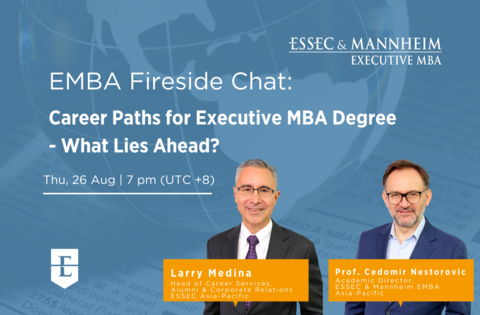 Join the EMBA Fireside Chat with Larry Medina, Head of Career Services, Alumni & Corporate Relations at ESSEC Asia-Pacific to discuss on the new career opportunities in the current job market for EMBA graduates.