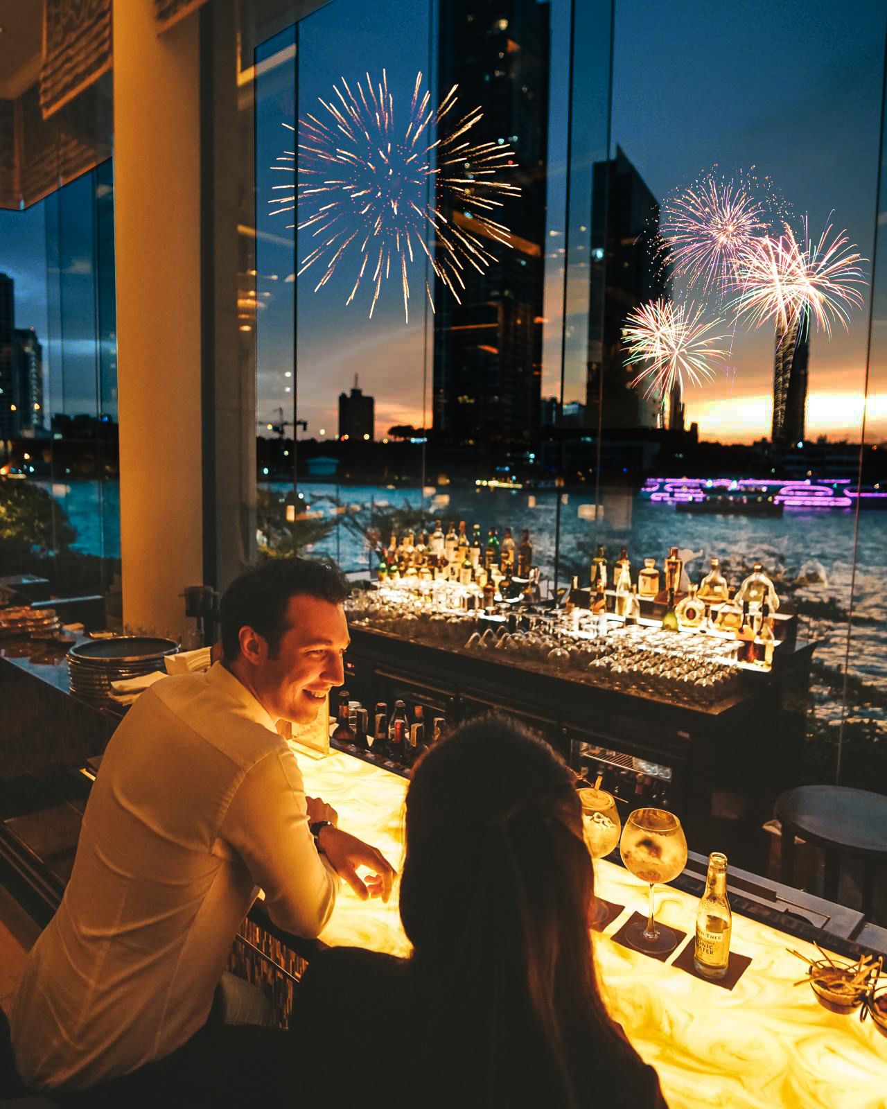 The perfect vantage point to view the amazing fireworks over the Chao Phraya River. Special à la carte menu and a selection of beverages are available.