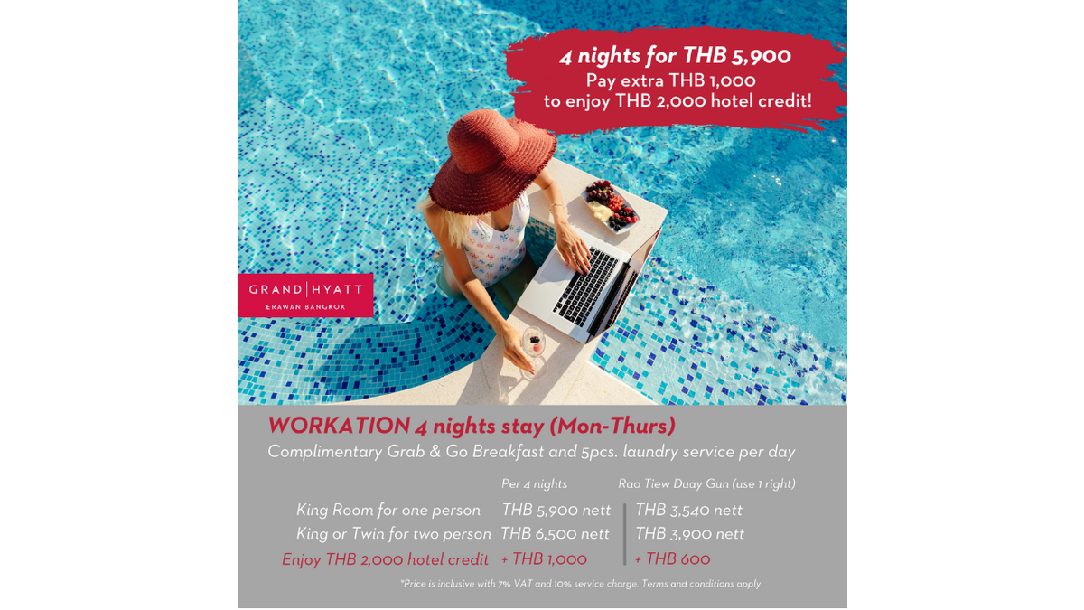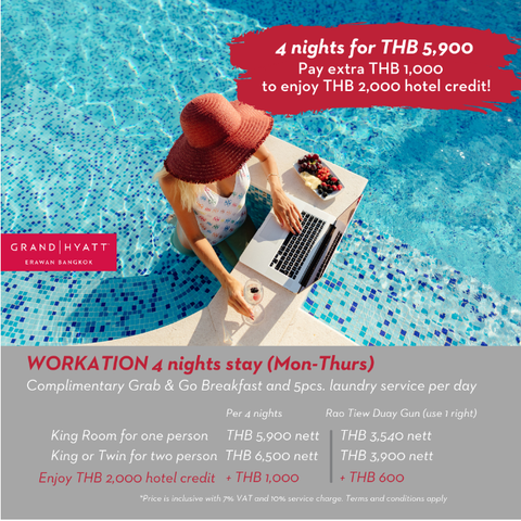 ENJOY GRAND WORKCATION OFFER BY GRAND HYATT ERAWAN BANGKOK