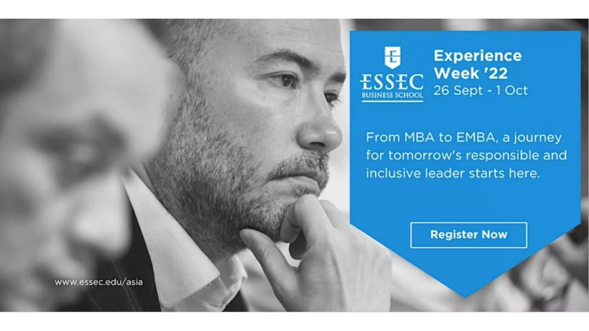 Join us from 26 September to 1 October 2022 to learn how ESSEC’s top-ranked MBA programs can maximize your potential.