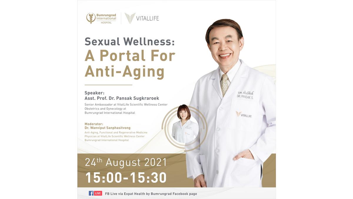Join Asst. Prof. Dr. Pansak Sugkraroek for a Facebook Live Health and Wellness Doctor Talk on the topic of: Sexual Wellness: A Portal for Anti-Aging.