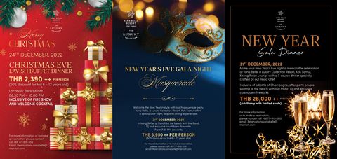 - 𝑪𝒉𝒓𝒊𝒔𝒕𝒎𝒂𝒔 𝑬𝒗𝒆 𝑳𝒂𝒗𝒊𝒔𝒉 𝑩𝒖𝒇𝒇𝒆𝒕 𝑫𝒊𝒏𝒏𝒆𝒓 offers you a special dinner night with a spectacular buffet by the beach with the exclusive fire show and special welcome cocktail crafted for the event only at THB 2,390++ per person