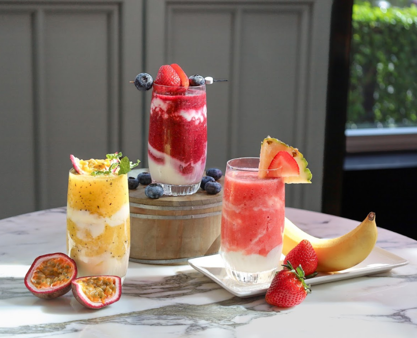 Refresh your day with a burst of fruity goodness from our three special yoghurt smoothies. Sip on the tangy delight of Mixed Berry Yoghurt, the tropical blend of Mango Passion Yoghurt, or the smooth harmony of Strawberry Banana Yoghurt. The perfect way to start your healthy day!
