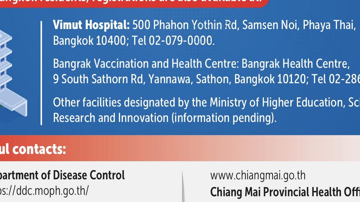 Foreigners in Bangkok can contact VIMUT Hospital or Bangrak Vaccination & Health Center, using their social security number or their passport