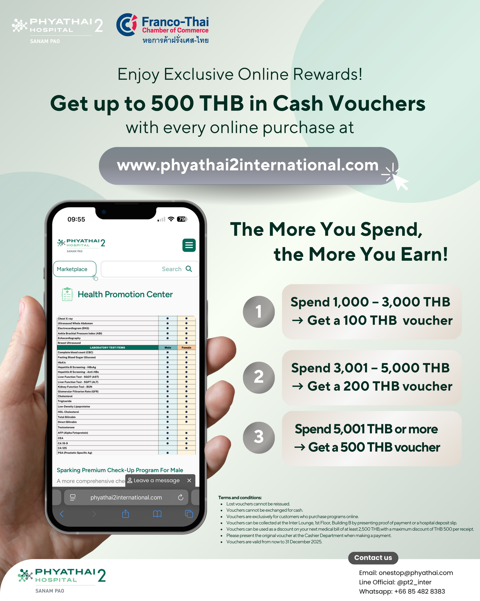 Purchase our screening program online today and enjoy exclusive offers, by getting up to a 500 THB gift voucher for your next doctor visit.