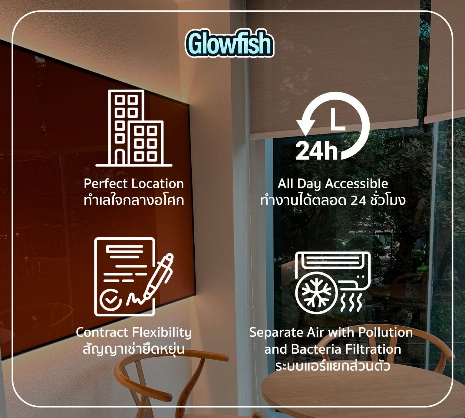 Discover the most stylish office renting space in Asoke. Glowfish Asoke offers you with the spacious serviced offices with fully-furnished and variety sizes starting from THB 5,xxx per person per month only!