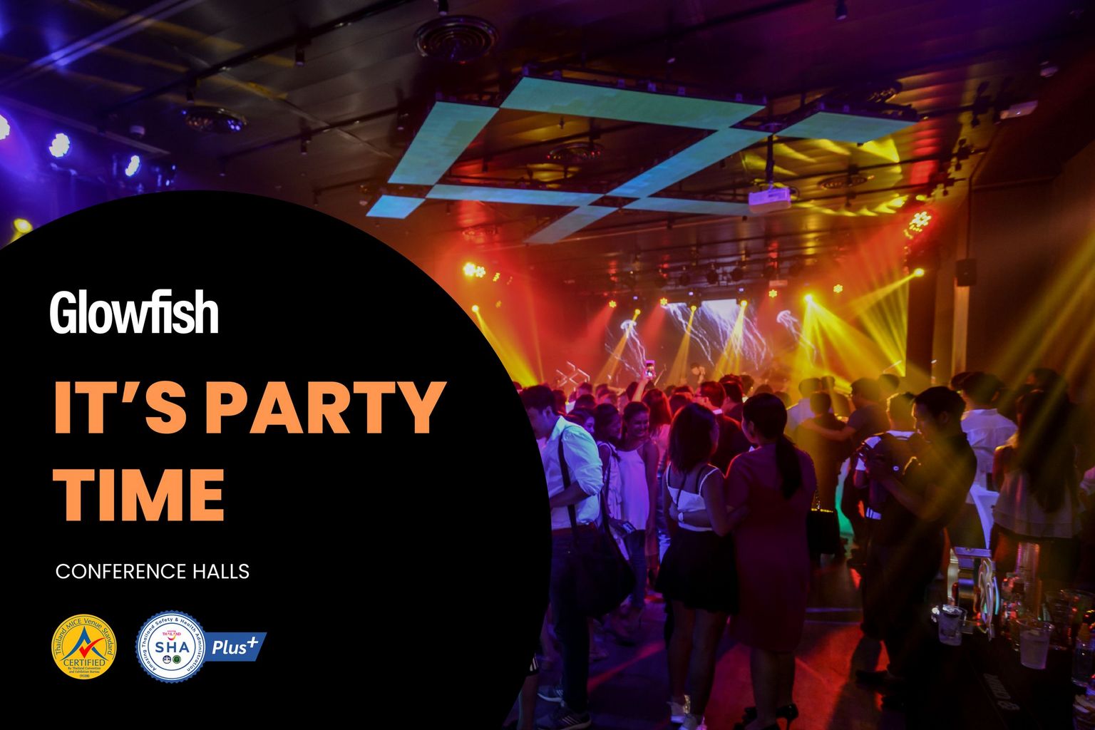 Let’s host parties at Glowfish! Whether you are interested in a small gathering or a corporate event, our conference halls located in the heart of Sathorn are suitable for you. Glowfish provides one-stop party service from high quality LED, AV equipment, and lighting systems, to full-service catering, studio, and free 2-hour on-site installation. At Glowfish, we offer versatile space, delightful party packages, creative options and attentive staff to meet every aspect of your needs.