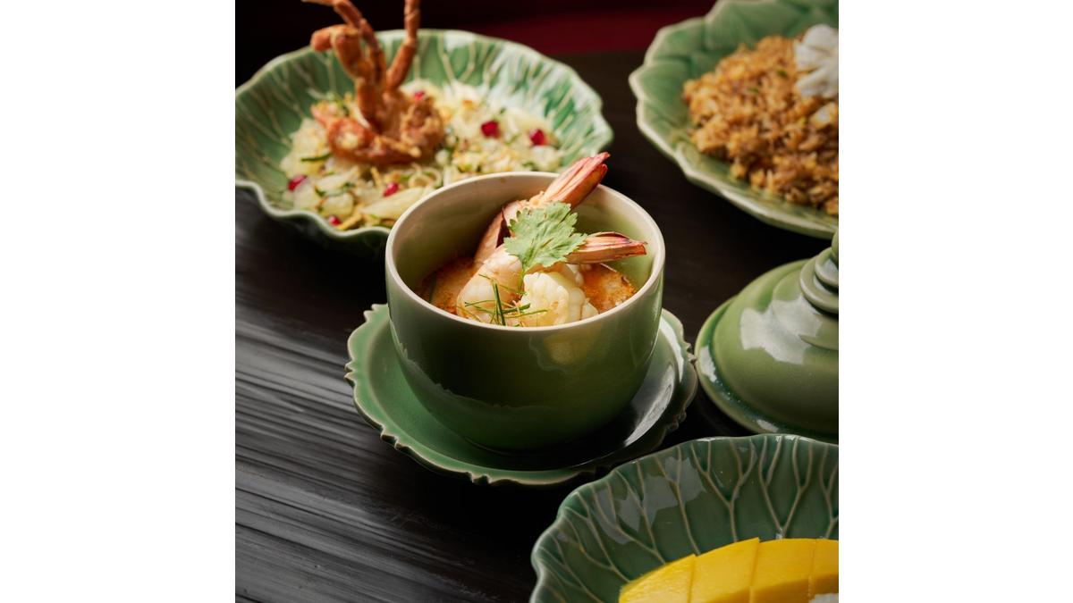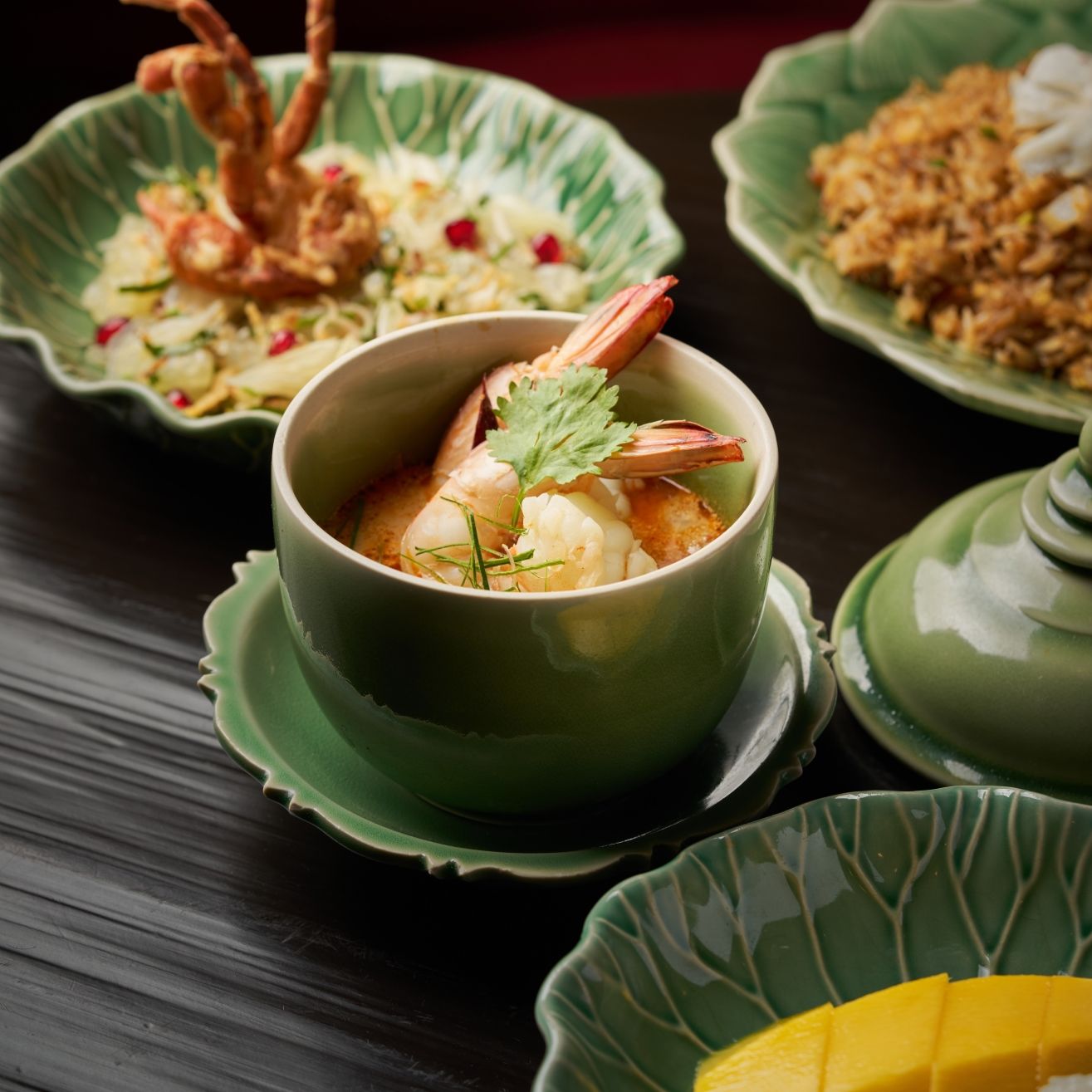 · Tom yum goong nam kon (ต้มยำกุ้งน้ำข้น) – This globally renowned Thai signature soup speaks for itself with its bold flavours. Spicy, sour, and fragrant, it features a tantalising combination of herbs, straw mushrooms and prawns, resulting in a gloriously tasty broth that is sure to satisfy your cravings.