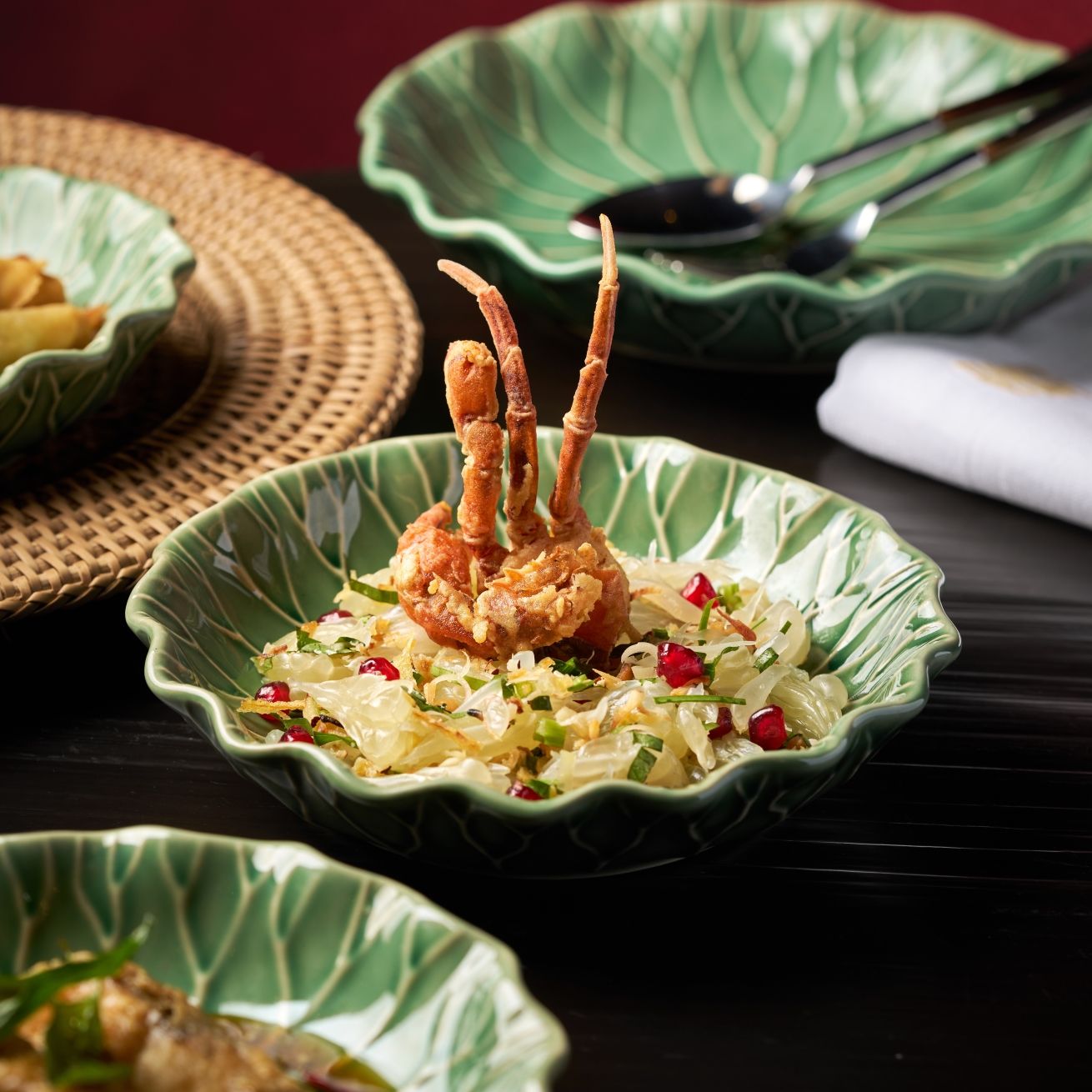 · Yum som o pu nim tord krob (ยำส้มโอปูนิ่มทอดกรอบ) – Nakon Pathom pomelo salad accompanied by crispy soft shell crab offers the most refreshing flavours. This enticing dish combines the juicy sweetness of pomelo with a refreshing mix of herbs and vegetables, creating a delightful harmony of tastes and textures, while the crispy soft shell crab adds a satisfying crunch to every bite.