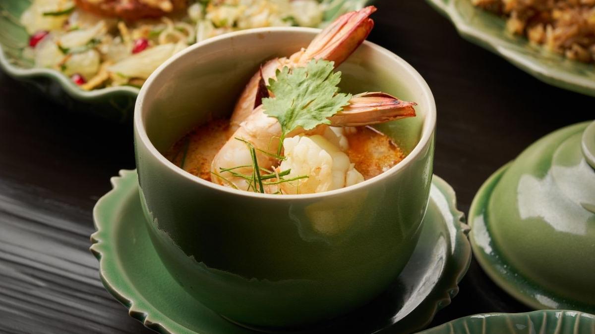 · Tom yum goong nam kon (ต้มยำกุ้งน้ำข้น) – This globally renowned Thai signature soup speaks for itself with its bold flavours. Spicy, sour, and fragrant, it features a tantalising combination of herbs, straw mushrooms and prawns, resulting in a gloriously tasty broth that is sure to satisfy your cravings.