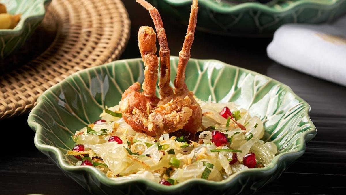 · Yum som o pu nim tord krob (ยำส้มโอปูนิ่มทอดกรอบ) – Nakon Pathom pomelo salad accompanied by crispy soft shell crab offers the most refreshing flavours. This enticing dish combines the juicy sweetness of pomelo with a refreshing mix of herbs and vegetables, creating a delightful harmony of tastes and textures, while the crispy soft shell crab adds a satisfying crunch to every bite.