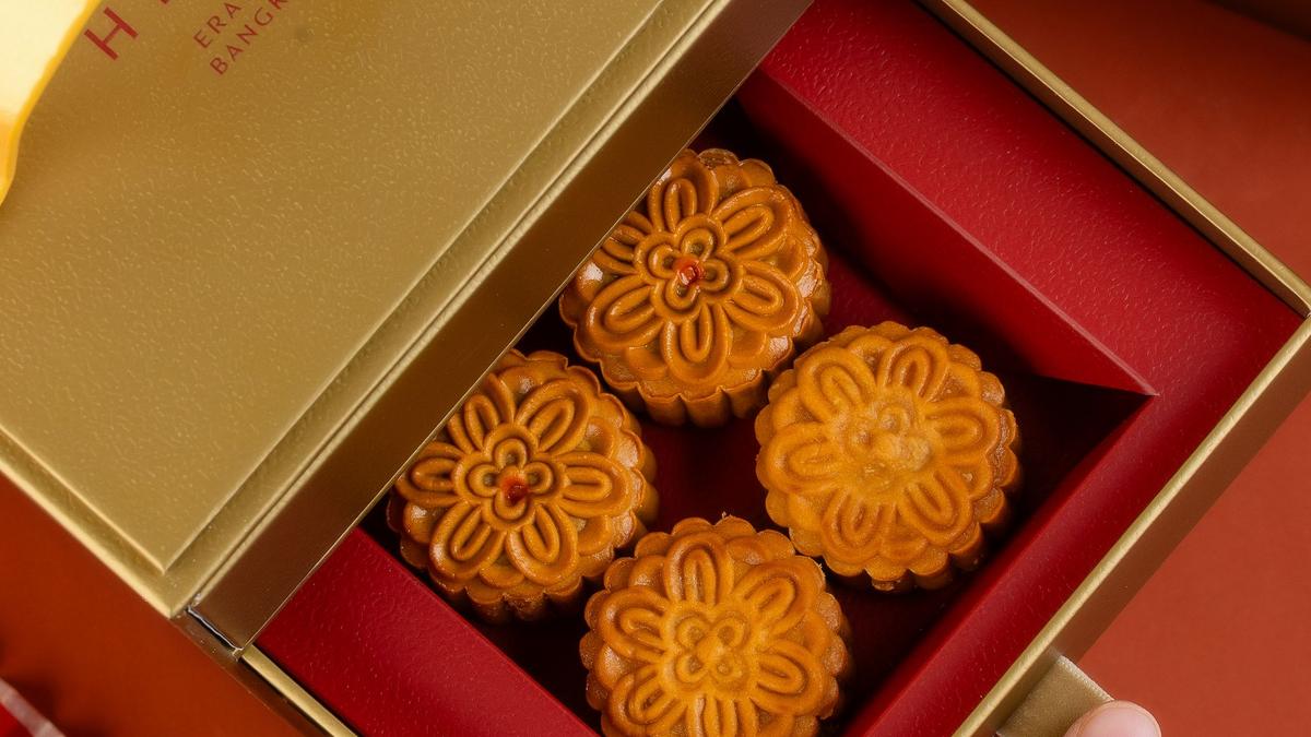 Enjoy our beautifully packaged mooncakes in six tempting flavours: Durian with Egg Yolk, Chinese Chestnut Macadamia, Yuzu Macadamia, Lotus Seed with Egg Yolk, Thai Tea with Macadamia, and Ngow Ying with Egg Yolk.