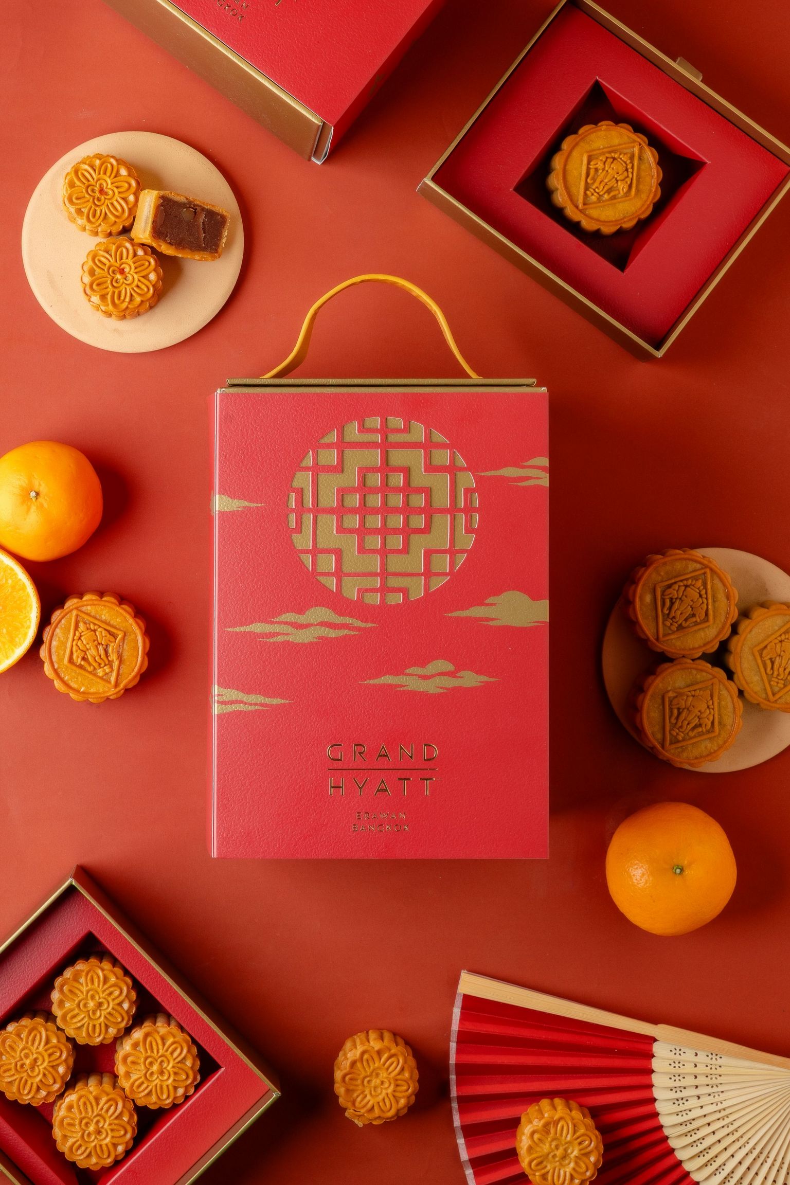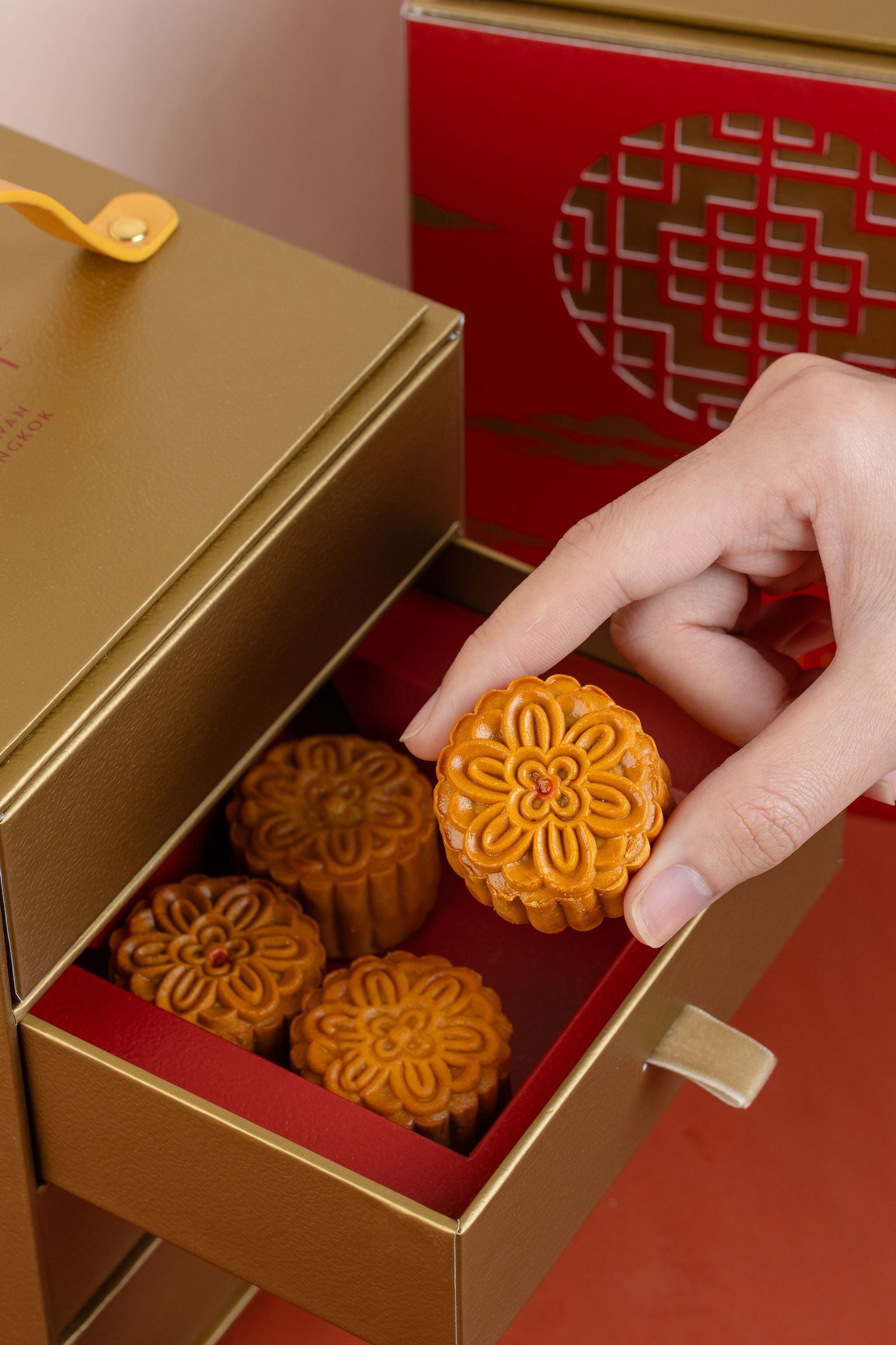 Enjoy our beautifully packaged mooncakes in six tempting flavours: Durian with Egg Yolk, Chinese Chestnut Macadamia, Yuzu Macadamia, Lotus Seed with Egg Yolk, Thai Tea with Macadamia, and Ngow Ying with Egg Yolk.