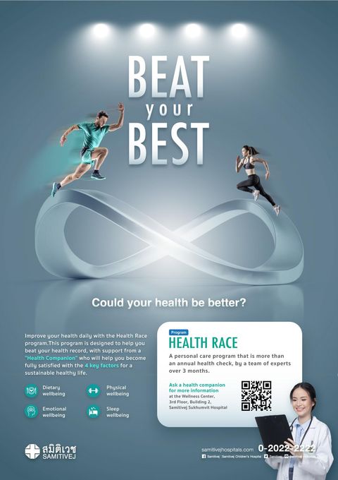 The Health Race program is a comprehensive healthcare program designed to help you break your own personal records which, in addition to detailing how best to make the most of your body, can improve the way you care for your long-term health. Our program can help you achieve these goals with what we call your personal “Health Companion,” who supports four key aspects to help you maintain great health. Your progress is monitored throughout the program to ensure you gain confidence in your abilities. It can also be regarded as a personalized program specially designed to suit your unique needs, allowing you to choose your own route toward achieving your set goals.