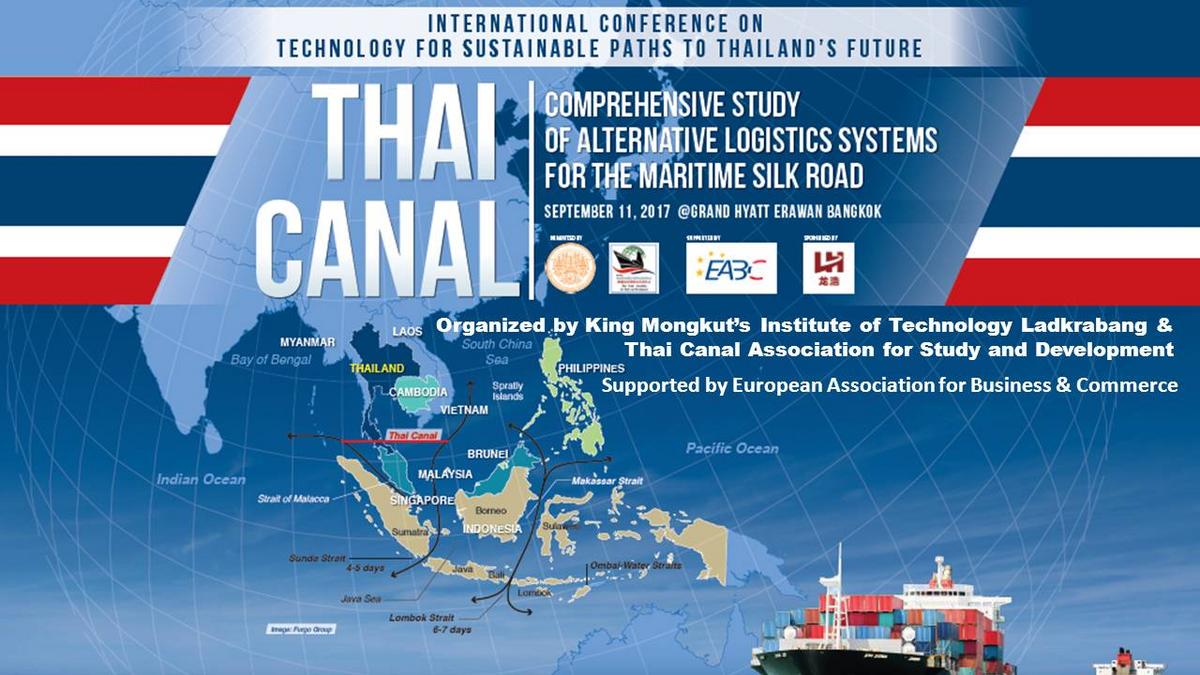 King Mongkut’s Institute of Technology Ladkrabang andThai Canal Association for Study and Developmentare pleased to announcethe International conference on TECHNOLOGY FOR SUSTAINABLE PATHS TO THAILAND’S FUTURE, THAI CANAL: Comprehensive Study of New Logistics Systems for the Asia-Pacific Region. The conference will include panels and presentations on major considerations for Thai Canal project from key industry specialists who are from private, public and government sectors.