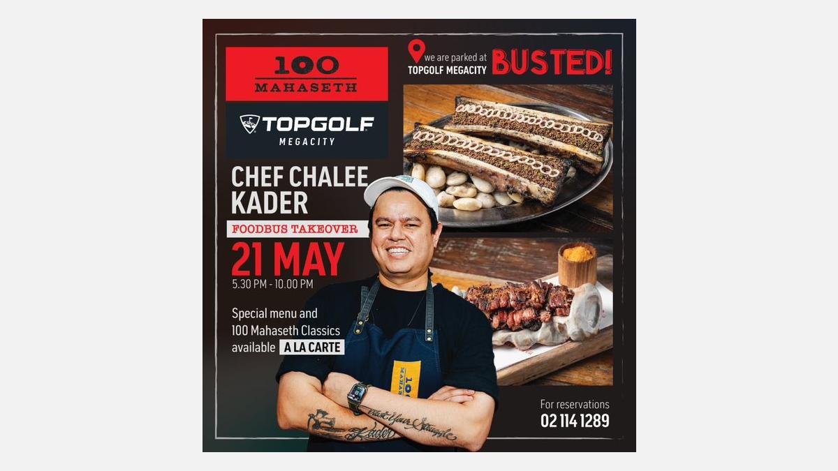 Foodies, are you ready for a gastronomic adventure? Join us for a special event with he renowed Chef Chalee Kader from 100 Mahaseth, as he takes iver the BUSTED Area of Topgolf Megacity on May 21st 2023. This is an event you won’t want to miss!