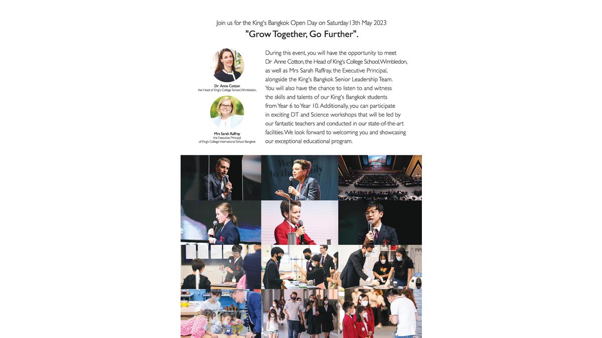King’s Bangkok Open Day: "Grow Together, Go Further" on Saturday 13th May 2023 at King’s College International School Bangkok.