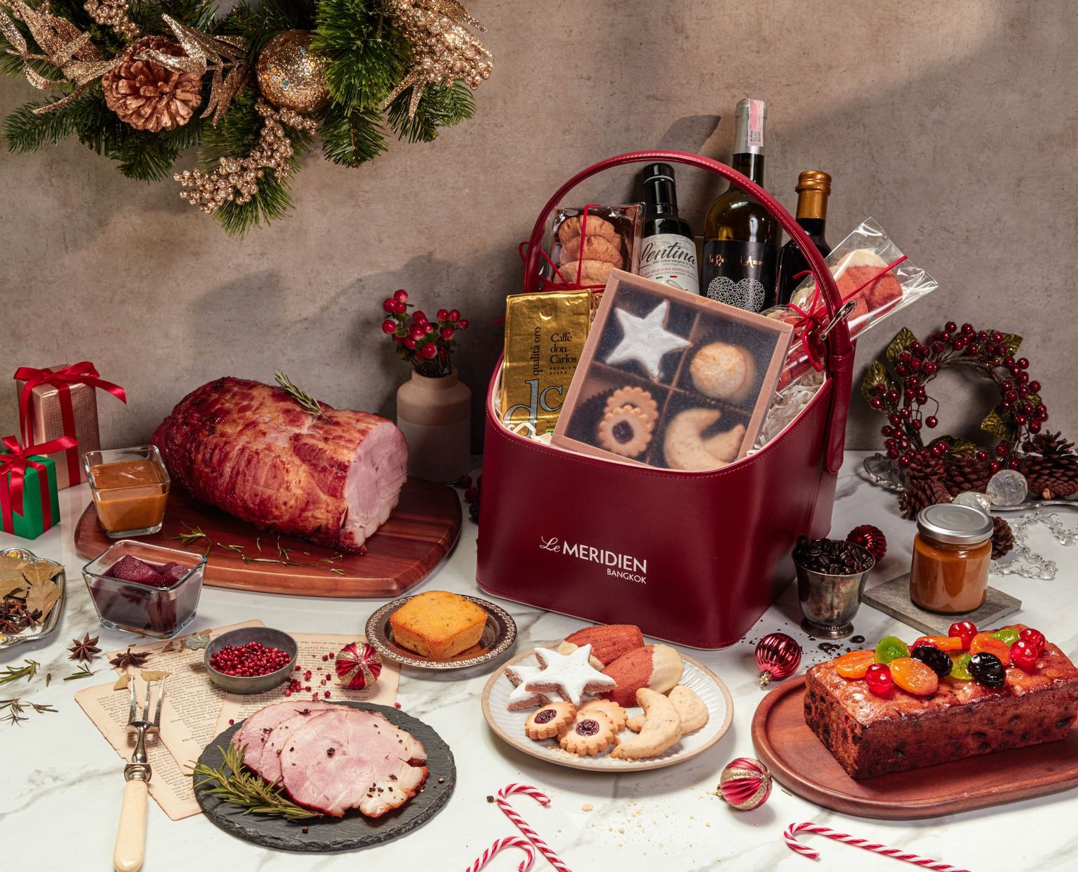 For guests seeking the perfect present for friends, family or business partners, a choice of hampers are packed full of delicacies and presented in beautiful boxes. Choose from the Rolling Ribs Brew Bar & BBQHamper (THB2,500 net), which features beef brisket, cornbread, signature sauce and plenty of other delights, Le Méridien GourmetHamper (THB2,800 net), which includes a succulent Christmas ham Or Coffee pork belly ham, pear & wine sauce, premium Arabica coffee, Christmas fruitcake and much more, and the La Fête Gourmet Hamper (THB2,000 net) which contains sparkling wine, Araksa tea, Christmas cookies and chocolate bars. Finally, visitors to the hotel can pick up premium La Fête Goodies, such as Christmas cookies, cakes, gourmet gifts and fine wines.