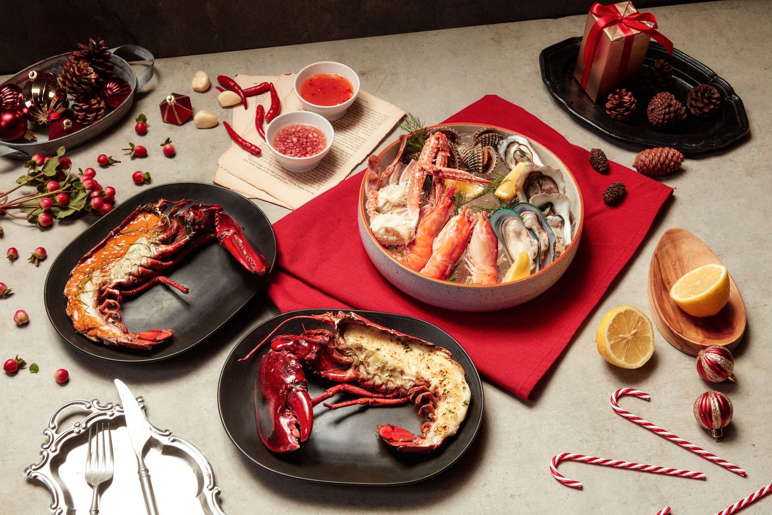 Seafood lovers can also indulge in an alternative Christmas feast, with the mouth-watering “Pizza, Pasta & More” menu plus half a lobster (cooked in a choice of styles, such as thermidor, chu chee curry and more) and a sensational selection of seafood on ice, including freshly-shucked oysters, blue crab, river prawns, shrimps, mussels and cockles. Price is at THB1,850 net/adult and THB925 net/child (6 - 11 years old).
