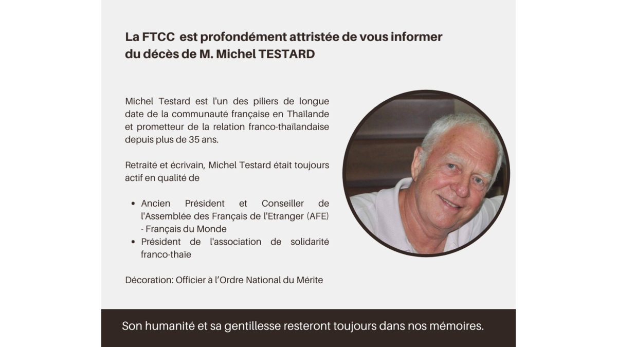 Michel Testard est l'un des piliers de longue date de la communauté française en Thaïlande et prometteur de la relation franco-thaïlandaise depuis plus de 35 ans.