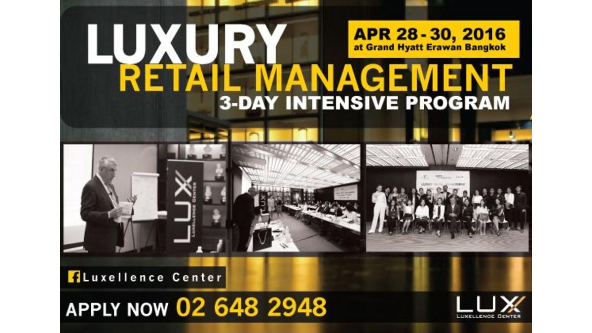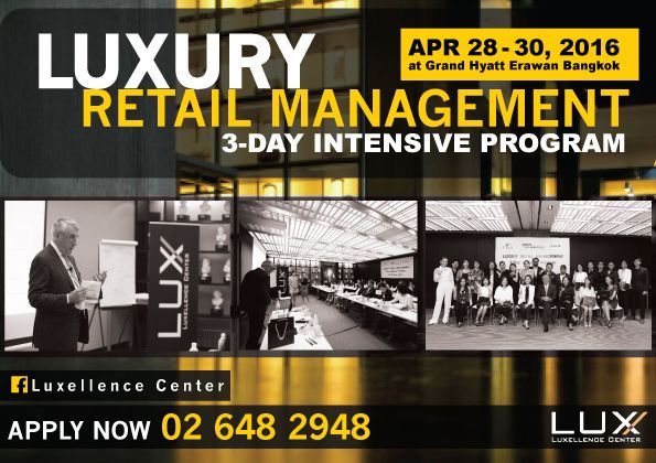LUXELLENCE CENTER as part of CP ALL announces the Third “Luxury Retail Management” programme to be held in Bangkok on Thursday, April 28th – Saturday, April 30th, 2016 at Grand Hyatt Erawan Bangkok Hotel. This exclusive three-day intensive program is conducted by Prof.