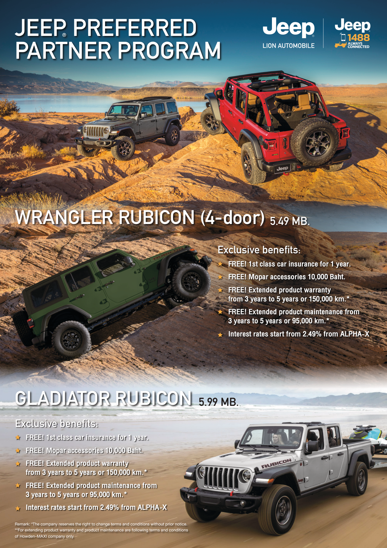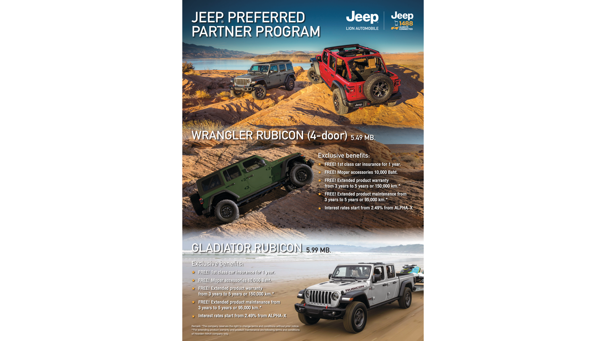 (Including JEEP® CARE product warranty and product maintenance 3 years) - Gladiator Rubicon 5,990.000 Baht